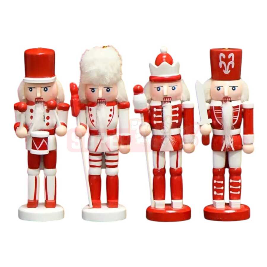Qırmızı və ağ tonlarda hazırlanmış bu 4-lü Şelkunçik (Nutcracker/Fındıqqıran) fiqur dəsti həm masaüstü, həm də yolka bəzəyi kimi istifadəyə uyğundur. 13 sm ölçüdə olan fiqurlar əl işi incəliyi ilə hazırlanıb və hər biri fərqli dizayna malikdir – kral, barabançı, qılınclı və kürklü papaqlı modellərlə. Parlaq rəngləri və detallı görünüşü ilə bu dekor dəsti Yeni il ab-havasını gücləndirir, istənilən interyerə klassik bayram zərifliyi əlavə edir.