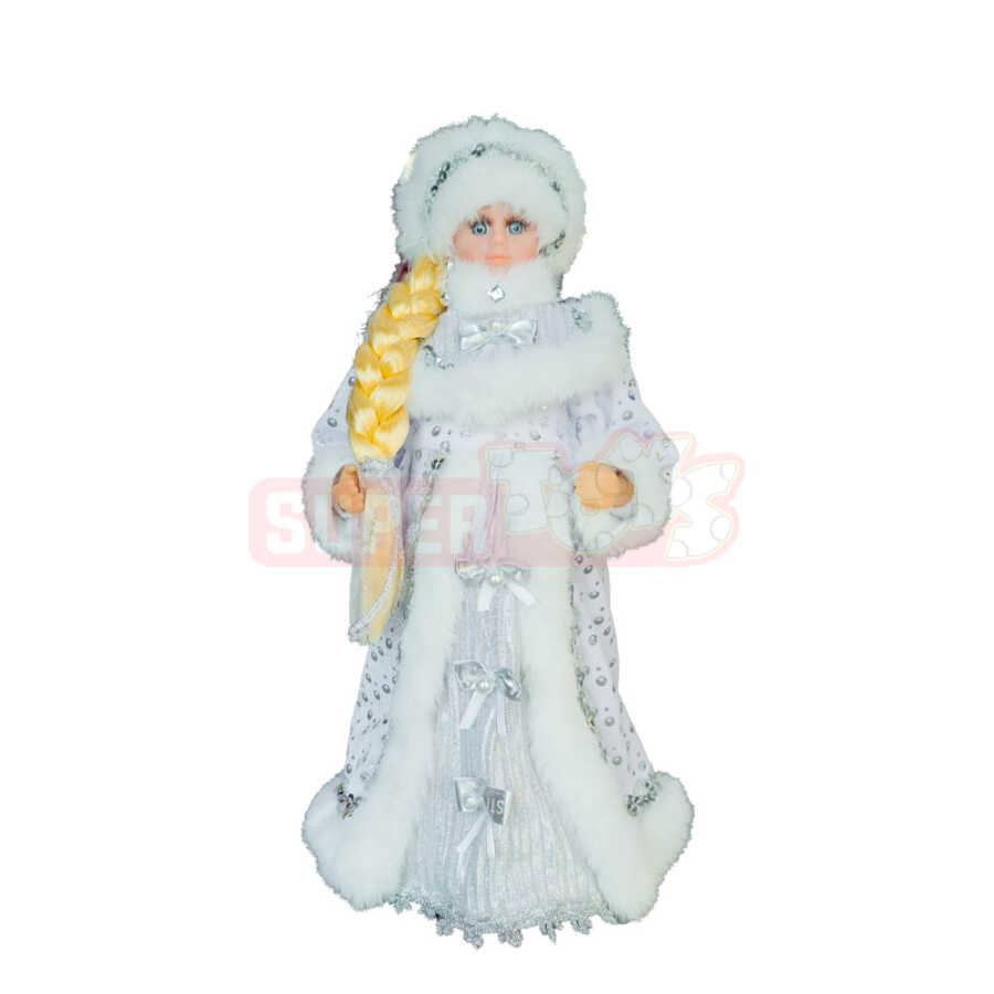 40 sm Qar Qızı fiquru – Yeni ilin sehirli atmosferini əks etdirən zərif və parlaq dekor fiqurudur. Ağ parıltılı geyimi, ağ xəz detalları və qızılı aksesuarı ilə bu fiqur bayram ab-havasını tam şəkildə yaşadır.