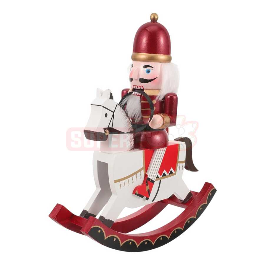 Atlı Şelkunçik (Nutcracker/Fındıqqıran) fiquru Yeni il dekorasiyasının ən orijinal və maraqlı modellərindən biridir. Qırmızı və ağ tonların harmoniyası, qızılı detallarla tamamlanmış bu fiqur həm klassik, həm də zərif görünüşə malikdir. Taxta materialdan hazırlanmış bu bəzək elementi masa üstü, yolka altı və ya pəncərə dekorasiyası üçün mükəmməldir. At fiquru üzərində yerləşən Şelkunçik fiquru bayram atmosferinə hərəkət və canlanma qatır, həm uşaqlar, həm də böyüklər üçün nostaljik dekor elementi kimi seçilir.