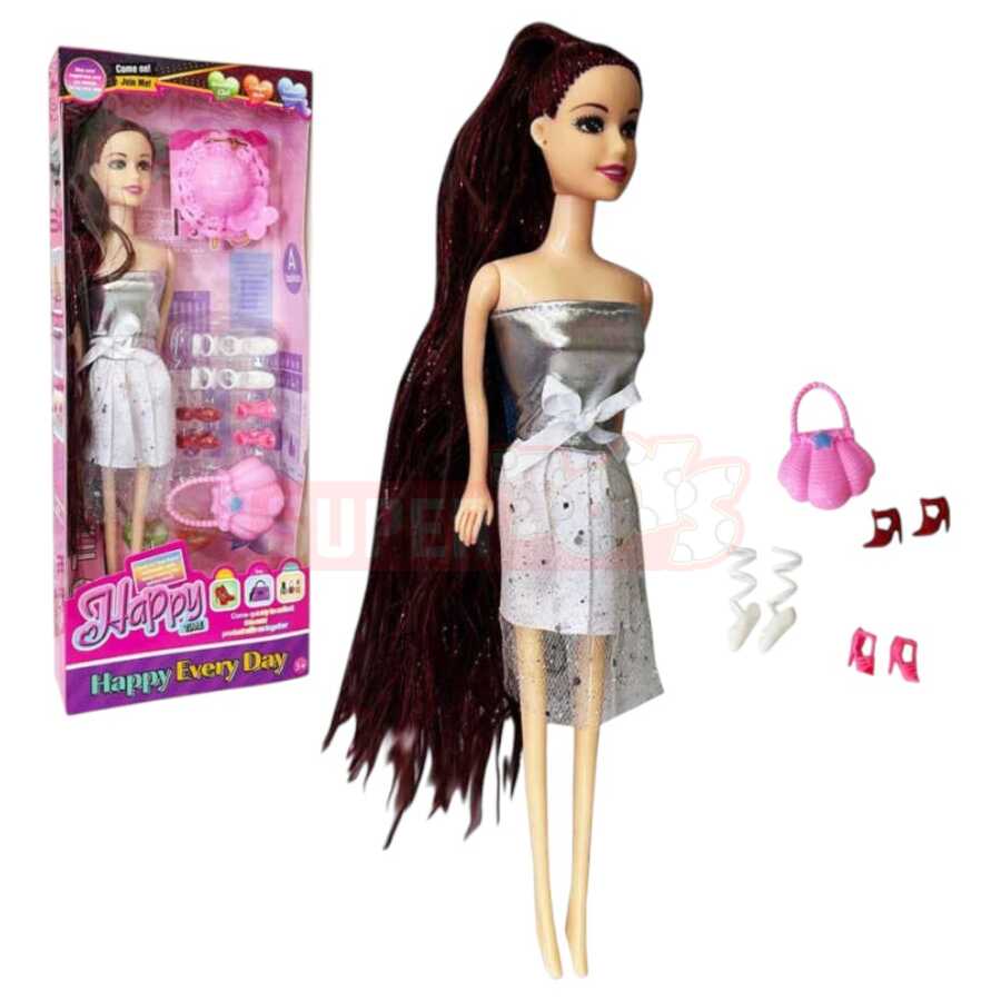 Qız uşaqları üçün xüsusi hazırlanmış Happy Doll uzun saçlı geyimli gəlincik ilə əyləncəli oyun vaxtı! Zərif gümüşü paltarı, parıltılı uzun saçları və dəbli aksesuarları ilə bu gəlinciy hər bir uşağın sevimli oyuncağına çevriləcək. Çanta və ayaqqabı dəsti ilə birlikdə gəlir, uşaqlar istədikləri kimi kombinasiya edərək öz moda üslublarını yarada bilərlər. İncə dizaynı sayəsində həm oyun, həm də kolleksiya üçün ideal seçimdir.