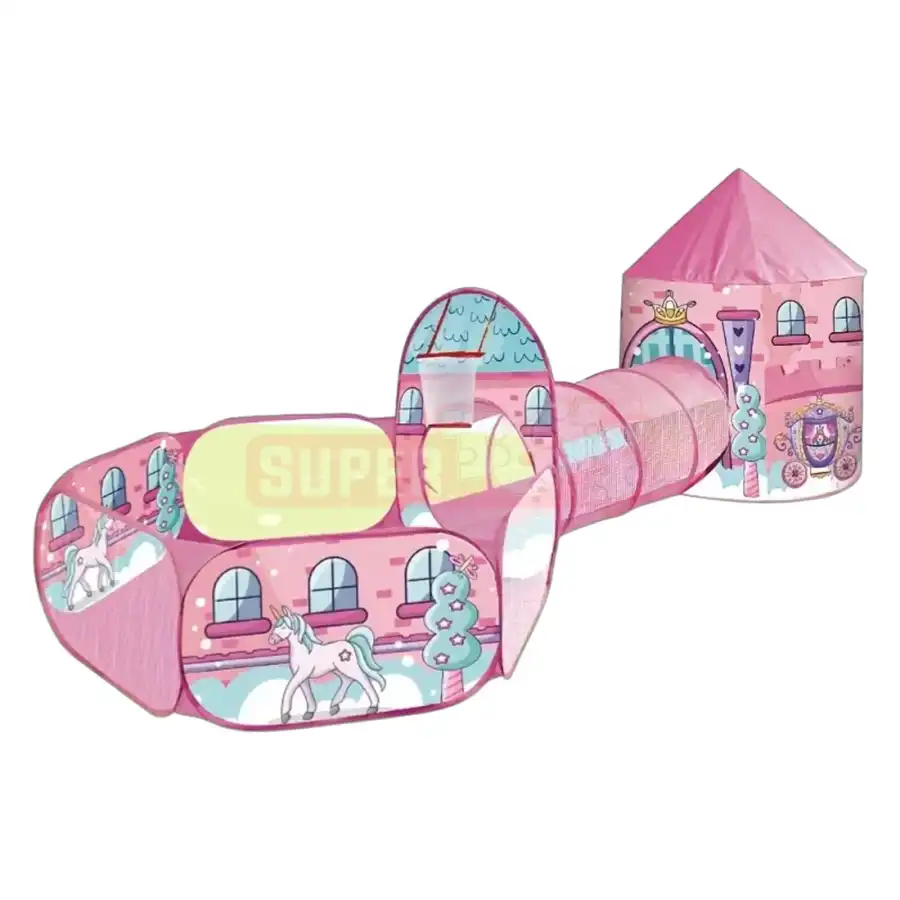 Castle Tent dizaynlı bu tunelli uşaq oyun evi uşaqlar üçün geniş və əyləncəli oyun məkanı yaradır. Çadır, tunel və oyun hissəsindən ibarət komplekt uşaqların rol oyunları oynamasına, xəyal gücünü və sosial bacarıqlarını inkişaf etdirməsinə kömək edir. Ev şəraitində rahat qurulur, yüngül və qatlanan konstruksiyası ilə istifadəsi çox rahatdır. Bu məhsulu Supertoys mağazalarından və onlayn satışdan əldə edə bilərsiniz.