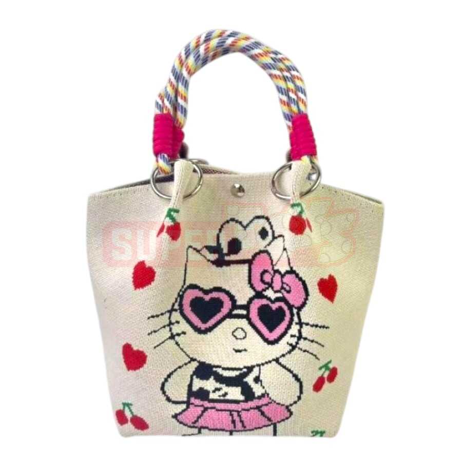 Hello Kitty temalı bu çanta şirin görünüşü, rəngli detalları və yumşaq toxuması ilə qız uşaqlarının sevimlisinə çevriləcək. Üzərində ürək və albalı naxışları olan dizayn həm yay, həm də gündəlik istifadə üçün idealdır. Geniş iç hissəsi, möhkəm və rəngli sapları ilə həm praktik, həm də estetik bir modeldir. Hədiyyəlik olaraq da seçilə bilər və uşaqların gündəlik dəbli görünüşünü tamamlayır.