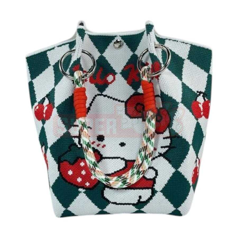 Yaşıl-ağ dama fonlu və çiyələk detalları ilə bəzədilmiş Hello Kitty dizaynlı bu çanta qız uşaqlarının ən çox sevdiyi modellərdən biridir. Yumşaq toxuma materialı, möhkəm metal halqaları və rəngli sapları ilə həm rahat, həm də davamlı istifadəyə uyğundur. Daxili hissəsi gündəlik əşyaların daşınması üçün yetərincə genişdir və istər məktəb, istər gəzinti, istərsə də aksesuar çantası kimi istifadə oluna bilər. Şirin görünüşü ilə hədiyyəlik olaraq da ideal seçimdir.