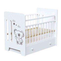 Zərif koala motivi və yumşaq ağ tonları ilə dizayn olunmuş bu uşaq beşiyi körpəniz üçün həm rahat, həm də estetik bir uyarlıq yaradır. Çekmecəli saxlama bölməsi valideynlər üçün funksionallıq təmin edir, gündəlik əşyaların saxlanmasını asanlaşdırır. Minimalist görünüşü ilə həm oğlan, həm də qız otaqlarına uyğunlaşır.