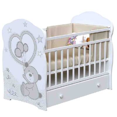 Yumşaq konturlu balonlu ayı fiquru ilə bəzədilmiş bu uşaq beşiyi, həm estetik, həm də funksional dizaynı ilə seçilir. Ağ rəngi və rahat quruluşu körpənizin otağına sakit və təmiz görüntü bəxş edir. Alt hissədəki geniş çekmecə gündəlik ehtiyaclar üçün əlavə saxlama imkanı yaradır. Həm qız, həm də oğlan uşaqları üçün idealdır.