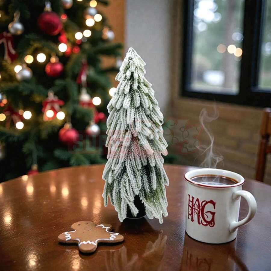 Rəng: Yaşıl budaqlar, ağ qar effekti