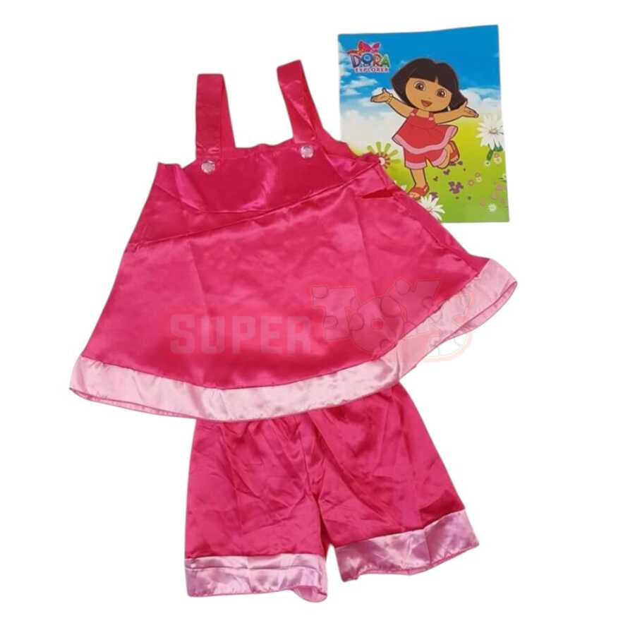 Sevimli cizgi film qəhrəmanı Dora the Explorer üslubunda hazırlanmış bu Halloween geyimi, balaca qızlar üçün ideal seçimdir! Parlaq çəhrayı tonlarda olan dəst həm bayram tədbirləri, həm fotosessiyalar, həm də əyləncəli tematik partilər üçün nəzərdə tutulub. Yumşaq və parlaq material uşağın dərisinə zərər vermir, geyimi həm rahat, həm də şən edir.