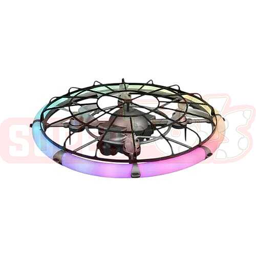 Dron Ufo-M18 müasir görünüşlü, kompakt və diqqətçəkən elektron məhsuldur. UFO formasını xatırladan dairəvi quruluşu və kənar hissəsindəki rəngli işıq effekti bu modeli digər dron görnüşlərindən fərqləndirir. Şəkildə görünən məhsul həm texnoloji görünüşü, həm də qeyri-adi dizaynı ilə maraq oyadır və fərqli elektron oyuncaq axtaranlar üçün cəlbedici seçim kimi görünür.