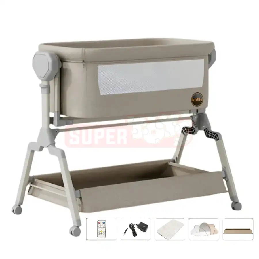 Kidilo BJJ-808 Khaki yan uşaq beşiyi yeni doğulan körpələr üçün təhlükəsiz, rahat və funksional istifadə imkanı yaradır. Bedside dizayn valideyn yatağına yaxın qurulmağa imkan verir və gecə baxımını asanlaşdırır. Bluetooth, musiqi və pultlu idarəetmə körpənin sakitləşdirilməsinə kömək edir. Tənzimlənən hündürlük sistemi müxtəlif yataq səviyyələrinə uyğunlaşır, nəfəsalan mesh panellər isə hava dövranını artırır. Bu məhsulu Supertoys mağazalarından və onlayn satışdan əldə edə bilərsiniz.