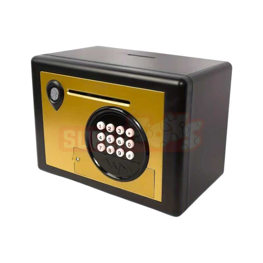 Bu elektron parol ilə işləyən kassa uşaqlar üçün həm əyləncəli, həm də öyrədici bir oyun vasitəsidir. Qızıl-qara dizaynı ilə real seyfi xatırladan bu pul qutusu uşaqlara pul yığma vərdişini formalaşdırmağa kömək edir. Üst hissədə sikkə yuvası, ön paneldə isə əskinasları avtomatik daxil edən ağıllı mexanizm mövcuddur.