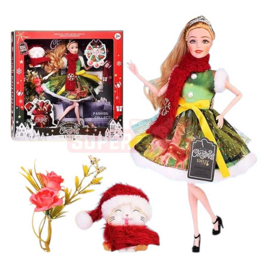 Rəngarəng Yeni İl Emily kukla seti ilə uşaqların bayram sevincini artırın! Parlaq və bayram naxışlı geyimi, qırmızı şərfi, çiçək və pişik aksesuarları ilə bu kukla uşaqların yaradıcılıq bacarıqlarını inkişaf etdirməsinə kömək edir. Bayram abu-havasını əks etdirən xüsusi dizaynı ilə həm oyun, həm də hədiyyə üçün əla seçimdir.