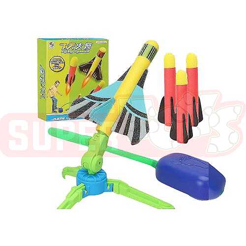 Dəstə daxildir: 1 ədəd fırlatma platforması, hava nasosu və 3 ədəd parlaq rəngli köpük raket.