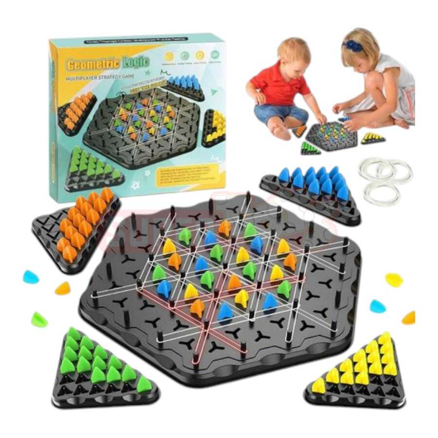 Geometric Logic məntiq oyunu uşaqların zehni inkişafını gücləndirən, rəng və forma tanıma, məntiqi düşünmə və strategiya qurma bacarıqlarını artıran interaktiv stolüstü oyundur. Oyunda hər bir uşaq müxtəlif rəngli fiqurları düzgün ardıcıllıqla yerbəyer edərək həm məntiqini, həm də diqqətini inkişaf etdirir. Həm tək oynamaq, həm də dostlarla və valideynlərlə birlikdə oynamaq mümkündür. Rəngli fiqurlar, üçbucaq quruluşlu modullar və elastik bağlayıcı ip sistemi sayəsində oyun uşaqlar üçün həm maraqlı, həm də öyrədicidir.