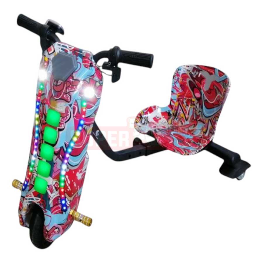 Unikal graffiti dizaynlı uşaq drift maşını ilə uşaqlar həm əylənəcək, həm də enerji dolu anlar yaşayacaq! Elektriklə işləyən bu 3 təkərli drift car, parlaq işıqları və rəngarəng gövdəsi ilə xüsusi görünüşə sahibdir. Rahat oturacaq və asan idarəetmə sistemi sayəsində uşaqlar təhlükəsiz şəkildə drift edə biləcək. Evdə, həyətinizdə və ya açıq meydançalarda istifadəyə uyğundur.