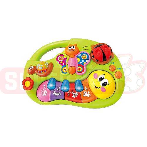 Hola Piano körpələr və kiçik yaşlı uşaqlar üçün hazırlanmış rəngli, interaktiv və öyrədici musiqi oyuncağıdır. Məhsulda piano düymələri, hərəkətli elementlər və uşağın diqqətini cəlb edən rəngli hissələr bir araya gətirilib. Kəpənək, uğurböcəyi və digər sevimli detallarla dizayn olunmuş bu oyuncaq həm musiqi, həm də hissiyyat oyunu üçün maraqlı seçimdir.