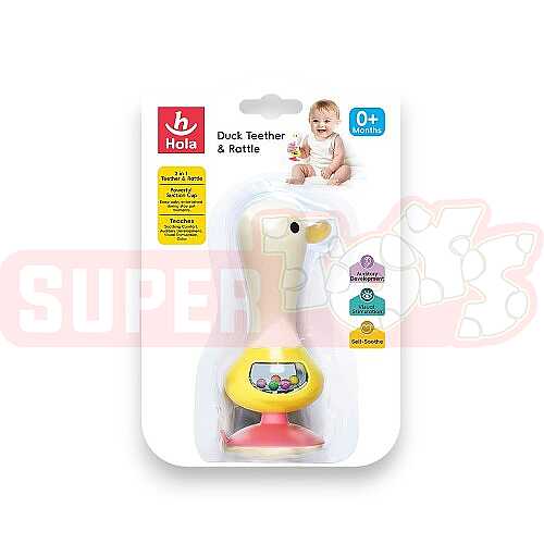 Hola Poqremuşka 0+ ay körpələr üçün uyğun olan, həm poqremuşka, həm də dişləmə oyuncağı funksiyası təqdim edən faydalı körpə məhsuludur. Şəkildə görünən ördək formalı bu model körpənin diqqətini cəlb edən sadə və sevimli dizayna malikdir. Alt hissəsində rəngli muncuqların olması səs effekti yaradır və körpənin oyuncağa marağını artırır.