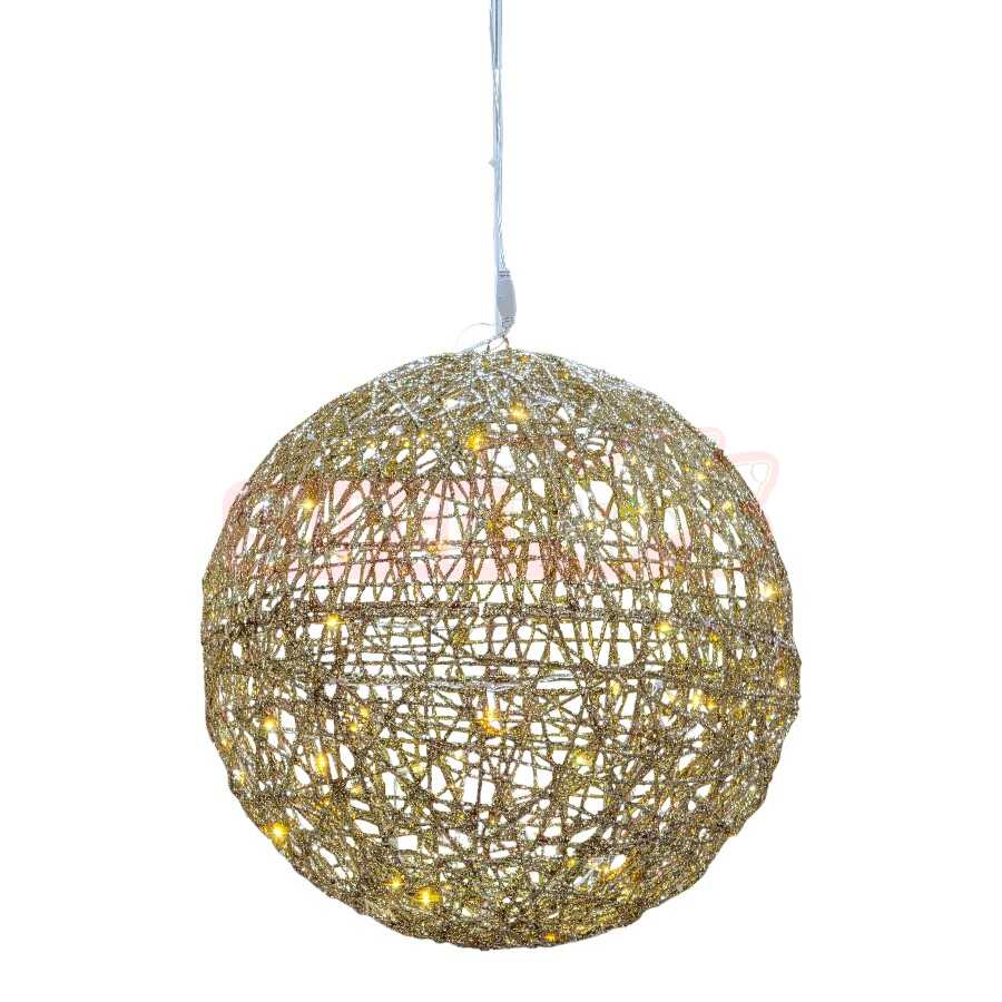 Diametri 40 sm olan bu qızılı işıqlı yolka oyuncağı geniş məkanlara xüsusi bayram parıltısı qatmaq üçün hazırlanmış premium dekor məhsuludur. İçindən yayılan isti LED işıqlar topun metal konstruksiyası ilə birləşərək həm yolka üzərində, həm də asma dekor kimi istifadə olunduqda möhtəşəm görüntü yaradır. Mağaza vitrinlərində, restoran və otellərdə, tədbir salonlarında, həmçinin ev dekorasiyasında unikal və diqqətçəkən bayram atmosferi formalaşdırır. Yüngül konstruksiya sayəsində asmaq və quraşdırmaq çox rahatdır. Bu məhsulu Supertoys mağazalarından və onlayn satışdan əldə edə bilərsiniz.
