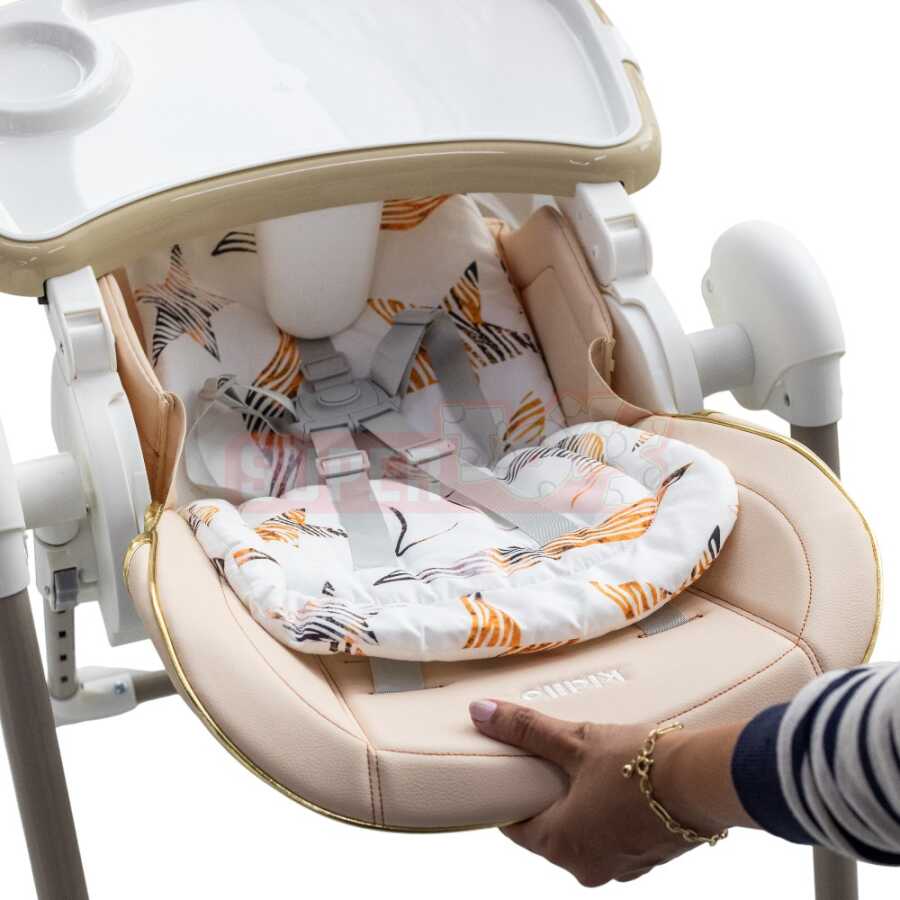 Kidilo markasının uşaq yemək stolu valideynlərin rahatlığı və uşaqların təhlükəsizliyi üçün ideal seçimdir. Yumşaq oturacaq, beş nöqtəli təhlükəsizlik kəməri və tənzimlənən hündürlük funksiyası ilə yemək vaxtını daha rahat edir. Təkərli konstruksiya sayəsində stolu evin hər yerində asanlıqla istifadə etmək mümkündür. Çıxarılan və yuyula bilən stol üstü gigiyenik istifadəyə imkan verir. Bu yemək stolu həm yemək, həm də oyun vaxtı üçün uyğundur və uşağın gündəlik həyatında praktik yardımçı olacaq.