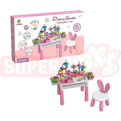 Konstruktor Masa uşaqlar üçün həm əyləncəli, həm də öyrədici oyun mühiti yaradan çoxfunksiyalı məhsuldur. Şəkildə görünən bu model masa formasında hazırlanıb və yanında dovşan qulaqlı sevimli oturacaqla birlikdə təqdim olunur. Üzərində bloklarla müxtəlif fiqurlar, güllər və dekorativ elementlər qurmaq mümkün olduğu üçün bu məhsul uşaqların gündəlik oyun vaxtını daha maraqlı edir. Çəhrayı rəngli dizaynı və estetik görünüşü xüsusilə diqqət çəkir.