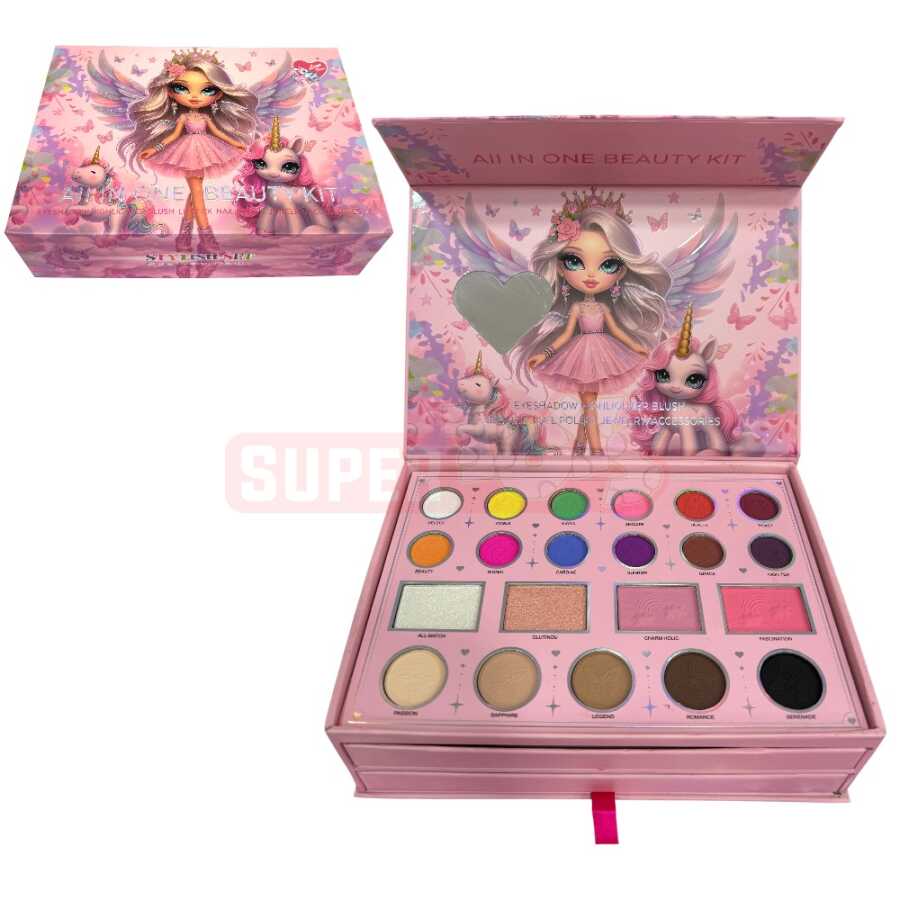 Kosmetika Dəsti oyuncaq qız uşaqları üçün hazırlanmış çoxfunksiyalı və cəlbedici beauty kitdir. Göz kölgələri, dodaq boyaları, ənliklər, fırçalar və aksesuarlar ilə təchiz olunan bu dəst uşaqların yaradıcılığını və estetik zövqünü inkişaf etdirməyə kömək edir. Qutulu və bölməli dizayn sayəsində bütün aksesuarlar səliqəli şəkildə saxlanılır və rol oyunları daha maraqlı olur. Bu məhsulu Supertoys mağazalarından və onlayn satışdan əldə edə bilərsiniz.