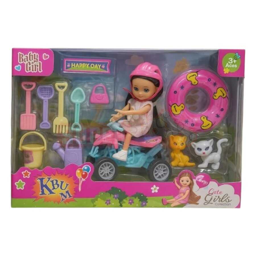 Kukla Lorlian Baby Girl seti qız uşaqlarının sevimli oyun dostu olacaq. Dəstdə kukla, çimərlik və bağ oyun alətləri, üzük dairəsi, iki heyvan fiquru və mini quad bike yer alır. Uşaqlar kuklanı gəzdirə, çimərlik oyunu qura, heyvanlarla birlikdə müxtəlif hekayələr yarada bilərlər. Zəngin aksesuarları sayəsində həm yaradıcılığı inkişaf etdirir, həm də uzun müddət əyləncəli oyun imkanı yaradır.