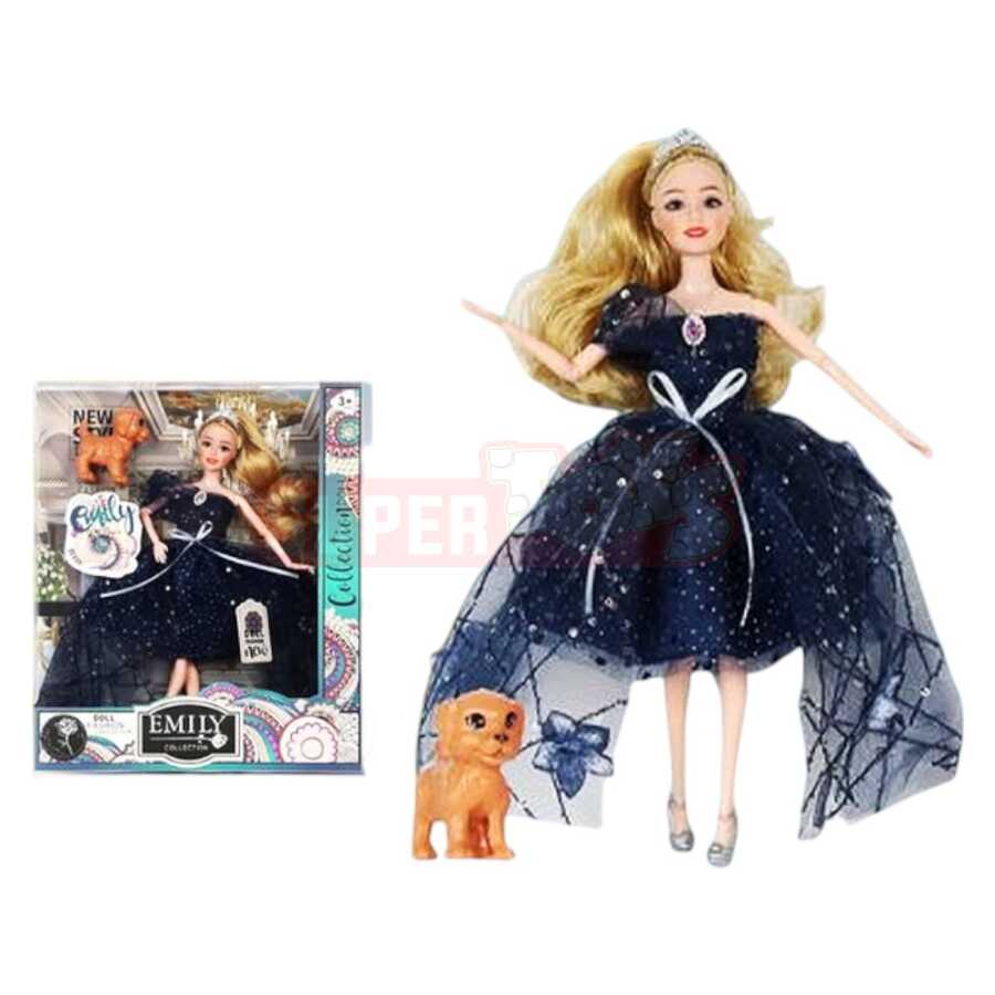Qara donlu gözəl şahzadə kukla və yanında sevimli köpəkçik oyuncağı ilə uşaqlar üçün unudulmaz oyun təcrübəsi yaradın. Parlaq detallarla bəzədilmiş uzun libas və tac kuklaya zəriflik qatır. Bu set həm oyun, həm də kolleksiya üçün ideal seçimdir. Kukla ilə uşaqlar yaradıcılıq bacarıqlarını inkişaf etdirir, öz nağıl dünyalarını qururlar.