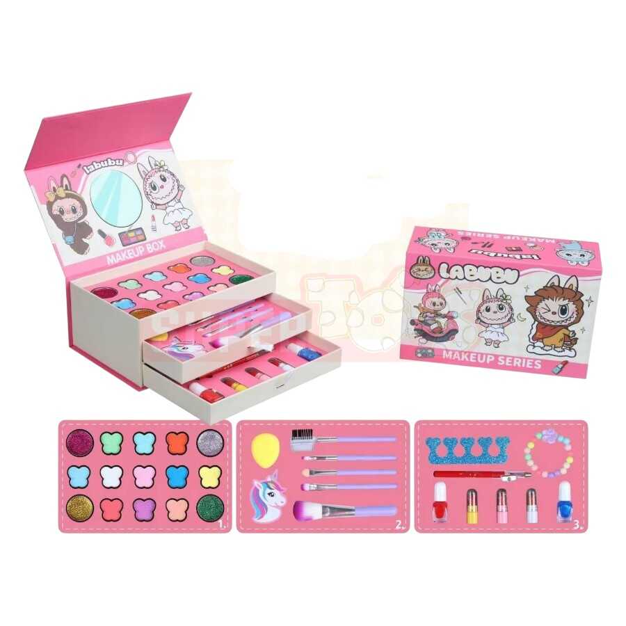 Labubu mövzulu bu makiyaj dəsti makiyajı və kreativ fəaliyyəti sevən qızlar üçün əla seçimdir. Dəst içərisində müxtəlif rəngli göz kölgələri, parıldadıcılar, dodaq məhsulları, fırçalar, süngər və aksessuarlar mövcuddur. Uşaq öz fantaziyasına uyğun makiyajlar yarada, rol oyunu vasitəsilə yaradıcılığını inkişaf etdirə bilər. Təhlükəsiz tərkibli və uşaqlar üçün uyğun hazırlanmış bu dəst həm evdə, həm də dostlarla oyun zamanı böyük maraq yaradır. Ad günü, Yeni il və digər xüsusi günlər üçün mükəmməl hədiyyə variantıdır. Bu məhsulu Supertoys mağazalarından və onlayn satışdan əldə edə bilərsiniz.