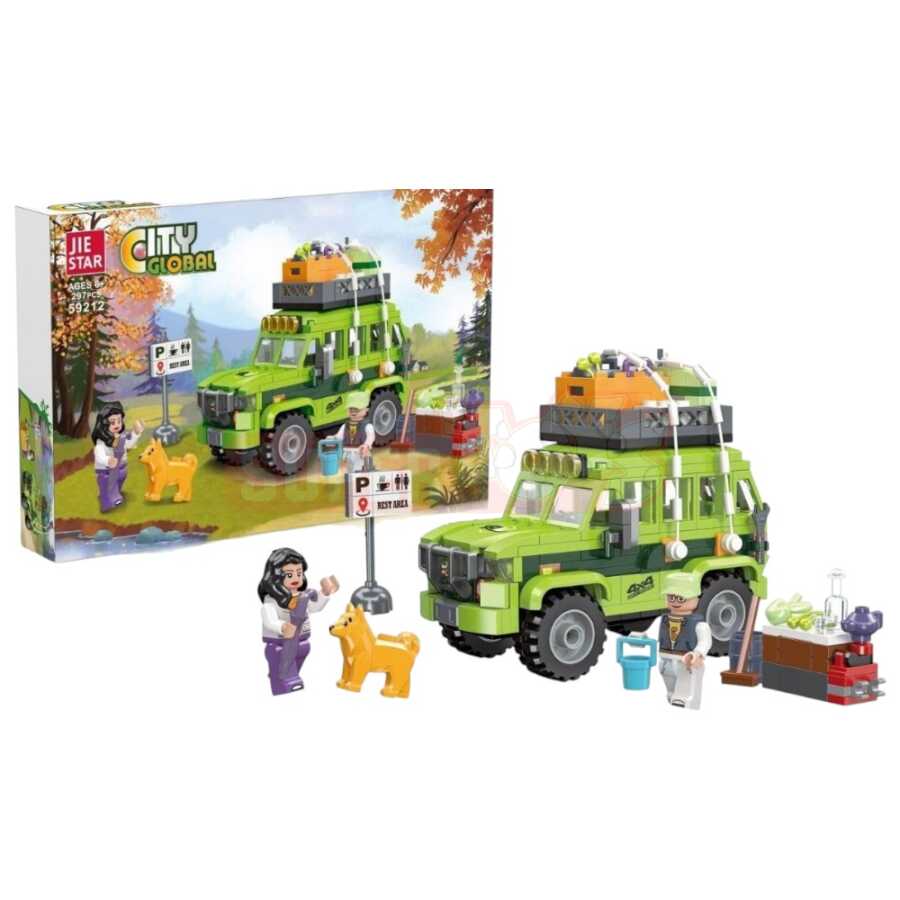 Yaşıl rəngli offroad maşın konstruktor dəsti uşaqların həm əylənərək, həm də öyrənərək vaxt keçirməsi üçün əla seçimdir. Bu LEGO tipli dəst sayəsində uşaq müxtəlif detalları birləşdirərək böyük bir SUV jeep modelini qura bilir. Dəstə əlavə fiqurlar, köpək oyuncağı, yol nişanı və aksessuarlar daxildir. Uşaqlar bu konstruktorla öz sərgüzəştlərini qura bilər, təxəyyüllərini inkişaf etdirərək yaradıcılıq bacarıqlarını gücləndirə bilərlər.