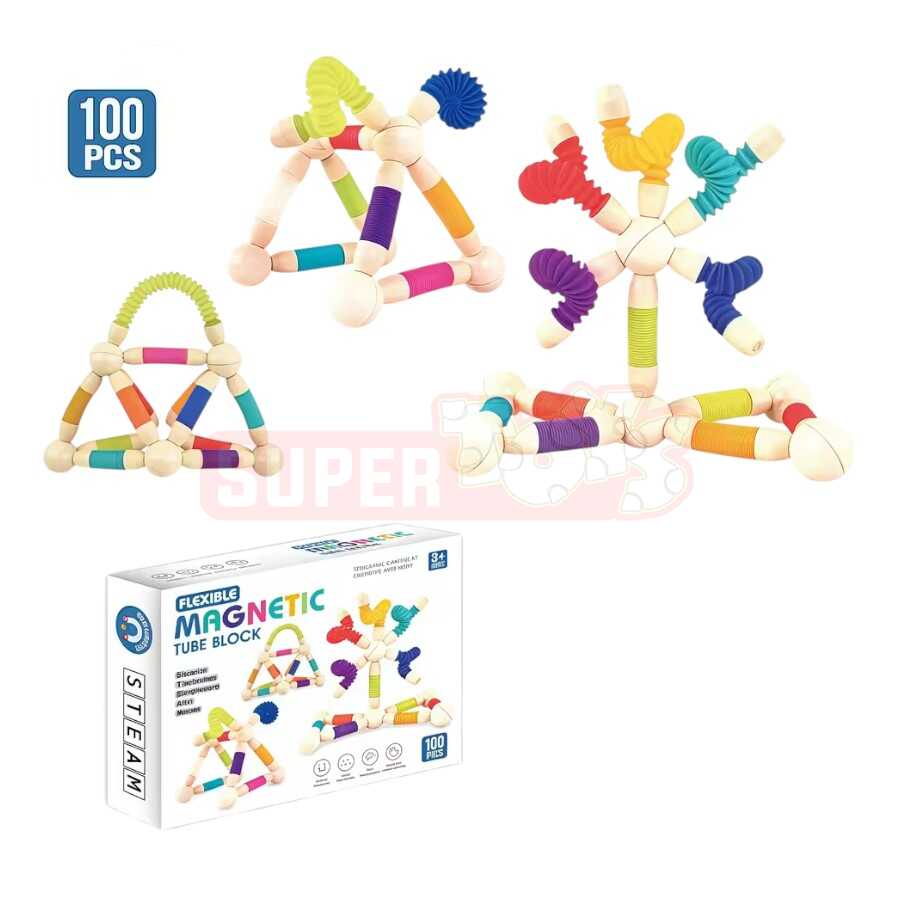 100 parçalı Elastik Maqnitli Qurma Oyunu, uşaqların yaradıcılıq, məntiq və motor bacarıqlarını gücləndirən STEAM tipli təhsil oyuncağıdır. Rəngli və çevik boru hissələri maqnitlərlə birləşdirilərək müxtəlif fiqurlar, strukturlar və simvollar yaratmaq mümkündür. Bu oyun uşaqlarda məkan təfəkkürü, səbəb-nəticə əlaqəsi və əl koordinasiyasını inkişaf etdirir.