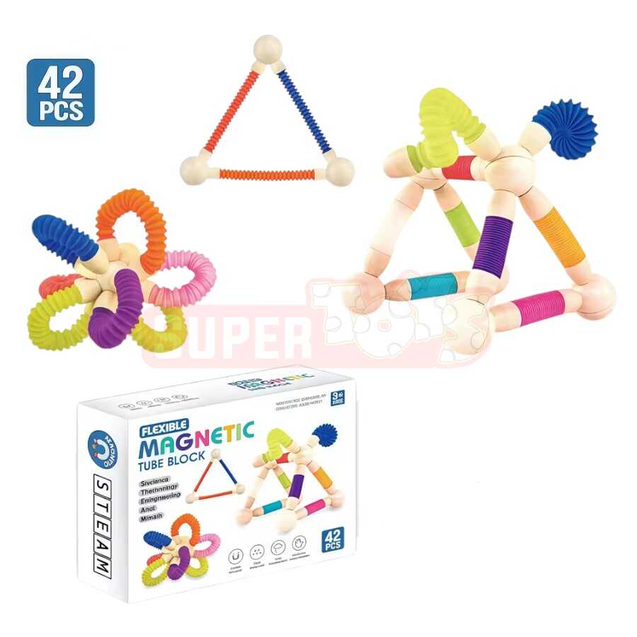 42 parçalı Elastik Maqnitli Qurma Oyunu uşaqların düşünmə, yaradıcılıq və məkan təfəkkürünü inkişaf etdirən tədris yönümlü STEAM oyuncağıdır. Elastik borular və maqnitli birləşmələr vasitəsilə müxtəlif fiqurlar, simvollar və obyektlər qurmaq mümkündür.