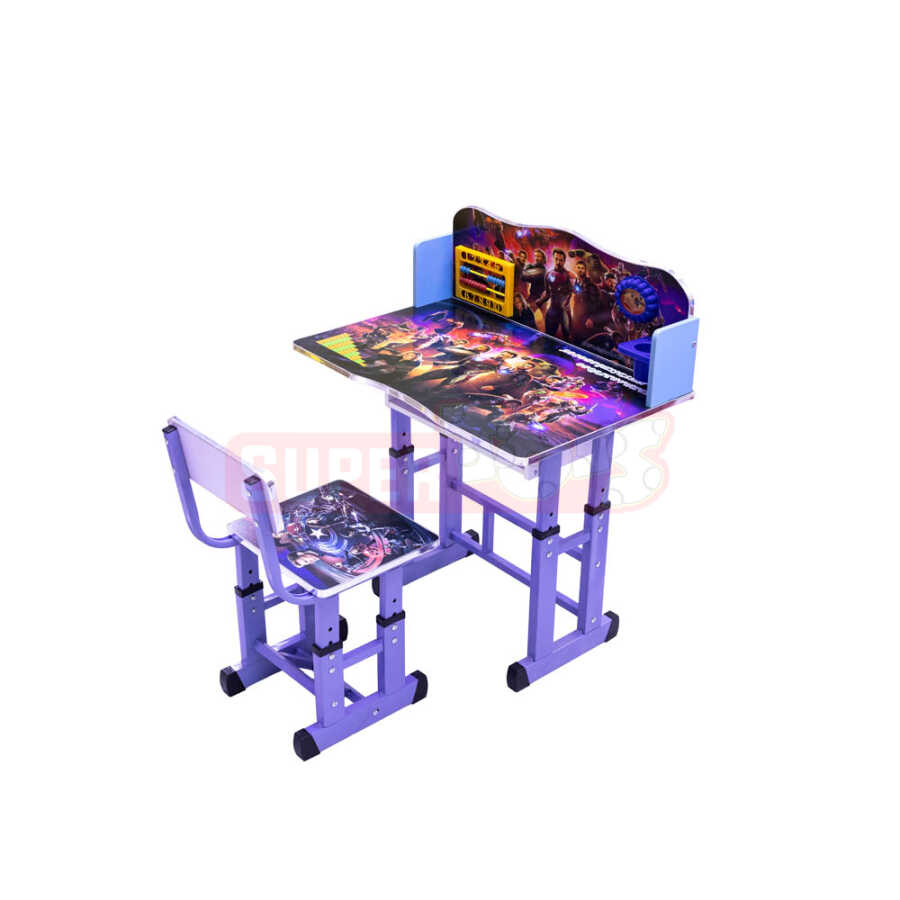 Məktəbli Masası Avengers Marvel qəhrəmanlarını sevən uşaqlar üçün hazırlanmışdır. Rəngarəng və cəlbedici dizayn sayəsində uşaqlar dərs oxuyarkən motivasiya qazanır. Geniş masa səthi yazı yazmaq və kitab oxumaq üçün ideal, rahat stul isə uzun müddətli istifadəyə uyğundur. Möhkəm materiallardan hazırlanmış bu masa həm ev tapşırıqları, həm də yaradıcılıq fəaliyyətləri üçün ən yaxşı seçimdir.
