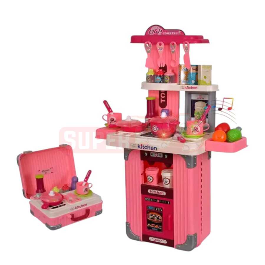 Bu çamadan tipli mətbəx dəsti həm kompakt, həm çoxfunksiyalı olması ilə uşaqların sevimli oyun dəstinə çevrilir. Çamadan formasında yığılaraq daşımaq çox rahatdır və açıldıqda tam funksional mətbəx görünüşü yaradır. Səs və işıq effektli ocaq paneli, qazan, tavan, stəkanlar, tərəvəzlər, qab-qacaq və müxtəlif mətbəx aksesuarları ilə təchiz olunub.