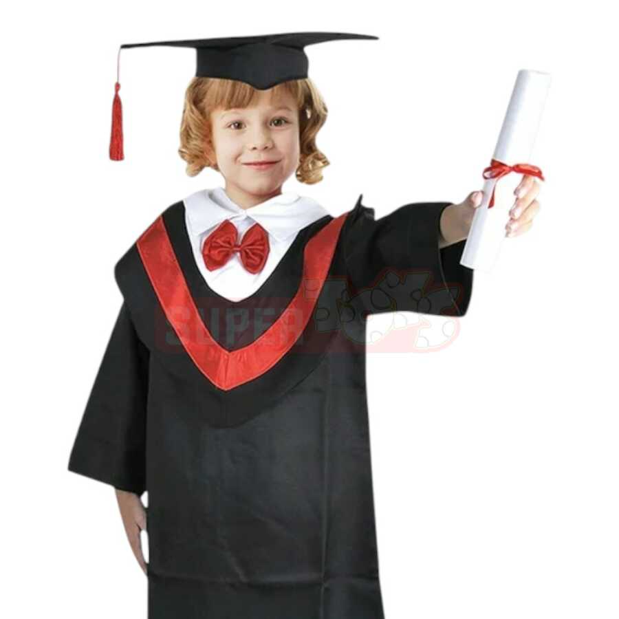 Məzun Paltarı – Halloween geyimi uşaqlar üçün həm məktəb, bağça məzuniyyət tədbirlərində, həm də Halloween və karnaval gecələrində istifadə oluna bilən xüsusi geyimdir. Qara rəngli uzun xalat, qırmızı detallar və klassik məzun papağı ilə tam görünüş yaradır. Tədbirlərdə uşaqlar özlərini real məzun kimi hiss edəcək, həm də fotoşəkillərdə unudulmaz anılar qalacaq. Rahat və keyfiyyətli materialdan hazırlanmışdır, geyinməsi asandır və uzun müddət istifadə üçün uyğundur.
