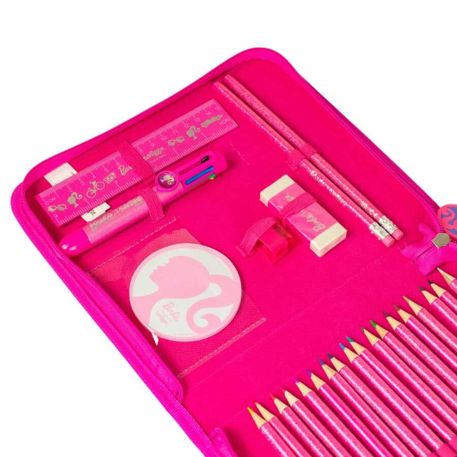 Smiggle və Barbie dizaynının birləşdiyi bu parlaq və möhkəm qələm qabı qız uşaqları üçün həm funksional, həm də estetik baxımdan mükəmməl seçimdir. Geniş iç bölməsi və fermuarlı bağlanma sistemi ilə qələmlər, pozanlar, xətkeşlər və digər məktəb əşyaları asanlıqla təşkil oluna bilər. Çəhrayı rəngi, metalik parıltısı və Barbie fiqurları ilə məktəb çantalarının sevimli tamamlayıcısına çevriləcək.