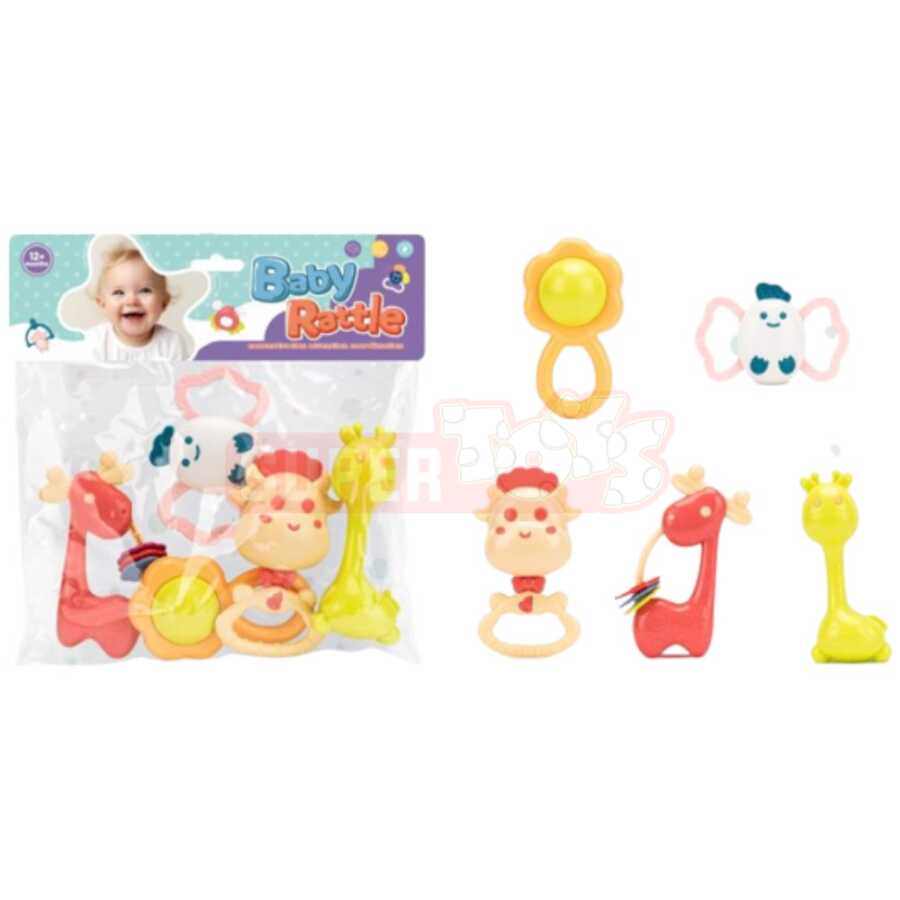 Paketdə müxtəlif fiqurlu çıngırdaq oyuncaqlar