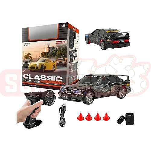 Bu Mercedes pultlu maşını, həm estetik xarici görünüşü, həm də texniki imkanları ilə seçilir. Qara parlaq rəngi və "Retro UK" üslublu detalları ilə bu maşın sadəcə bir oyuncaq deyil, həm də professional drift həvəskarları üçün nəzərdə tutulmuş bir modeldir.