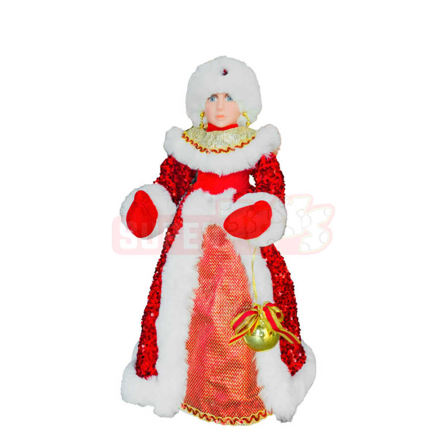 30 sm Qırmızı Qar Qızı fiquru – Yeni ilin sehirli atmosferini əks etdirən zərif və parlaq dekor fiqurudur. Qırmızı parıltılı geyimi, ağ xəz detalları və qızılı aksesuarı ilə bu fiqur bayram ab-havasını tam şəkildə yaşadır.