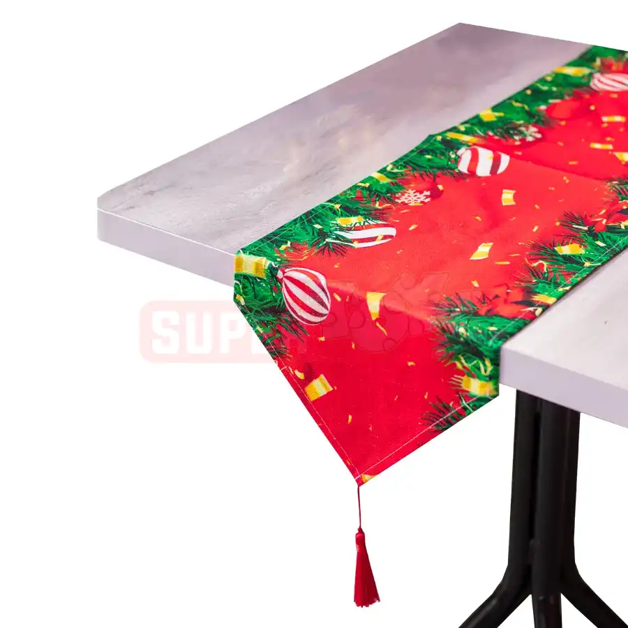 30×180 sm ölçülü bu Yeni İl Runner Süfrə Ortası, parlaq qırmızı fonu, şam budaqları və dekorativ oyuncaqlar ilə süfrənizə bayram ovqatı qatır. Rənglərinin canlılığı və detallı naxışları sayəsində masa dekorunu dərhal yüksəldir. Uc hissədəki qırmızı saçaq isə runner-ə daha zərif və tamamlanmış görünüş verir. Yeni il süfrələri, bayram masaları və xüsusi tədbirlər üçün ideal seçimdir.
