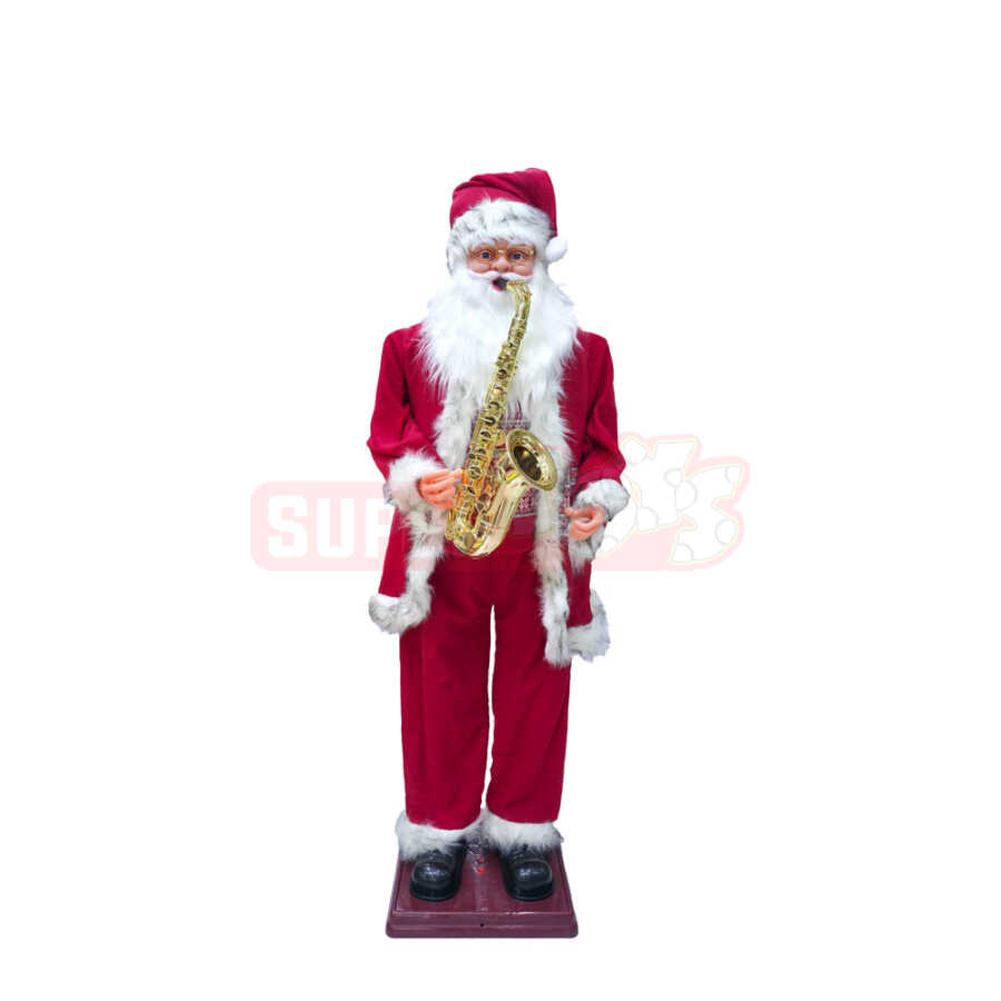 Yeni il atmosferini tam əks etdirən bu 1.8 metr hündürlüyündə hərəkətli və musiqili Şaxta Baba fiquru bayram dekorasiyasına möhtəşəm enerji qatır. Qırmızı geyimdə, əlində qızılı saksafonla musiqi ifa edən bu model həm böyüklər, həm də uşaqlar tərəfindən sevilir. Hərəkətli mexanizmi və səs effekti ilə ticarət mərkəzləri, mağazalar, restoranlar və evlər üçün ideal bəzək elementidir.
