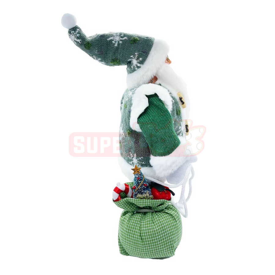 Bu 30 sm-lik yaşıl geyimli Şaxta Baba fiquru Yeni il bəzəkləri üçün ideal dekorasiyadır. Parlaq yaşıl geyimi, ağ xəz detalları və əlindəki hədiyyə torbası ilə bayram abu-havasını evinizə gətirir. Zərif işlənmiş detallar və yumşaq tekstura sayəsində həm yolka, həm masa, həm də vitrin dekoru üçün mükəmməl seçimdir. Uşaqların diqqətini cəlb edən bu model Yeni il üçün həm ev, həm də ofis dekorasiyası üçün uyğundur.