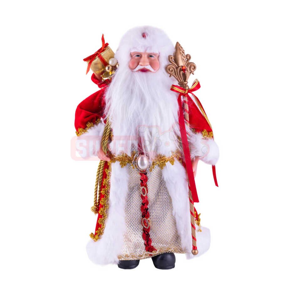 Bu dekorativ Şaxta Baba fiquru Yeni ilin sehrini evinizə gətirəcək mükəmməl bir aksessuardır. Parlaq qırmızı geyimi, ağ saqqalı və əlindəki hədiyyə çantası ilə bu fiqur bayram atmosferini canlandırır. Zərif qızılı və ağ detallarla bəzədilmiş geyim fiqura xüsusi zəriflik qatır və həm ev, həm də ofis dekorasiyası üçün idealdır. Yeni il süfrənizin, yolka ağacınızın və ya vitrininizin yanında bu fiqur əsl bayram ruhu yaradacaq. Həm uşaqlar, həm də böyüklər üçün Yeni il hədiyyəsi kimi də çox uyğundur.