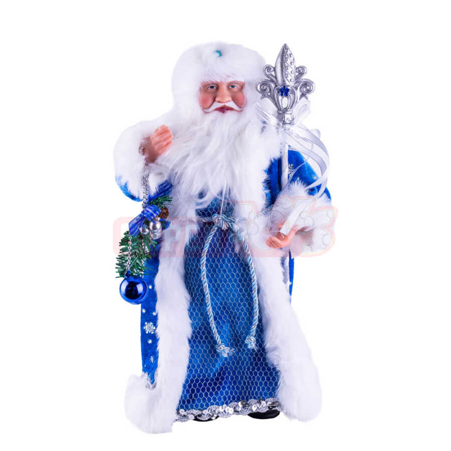 Bu mavi və ağ tonlarda, kürklü, naxışlı paltarlı Şaxta Baba (Ded Moroz) fiquru qış sehrini evinizə və ya iş mühitinizə daşıyır. Əlindəki zərif naxışlı asa, dekor bəzəkləri və yüksək detallı kostyumu ilə premium bayram fiqurudur. Yolkanın yanına, masa üstünə və ya vitrin dekoruna qoyularaq möhtəşəm Yeni il atmosferi yaradır.