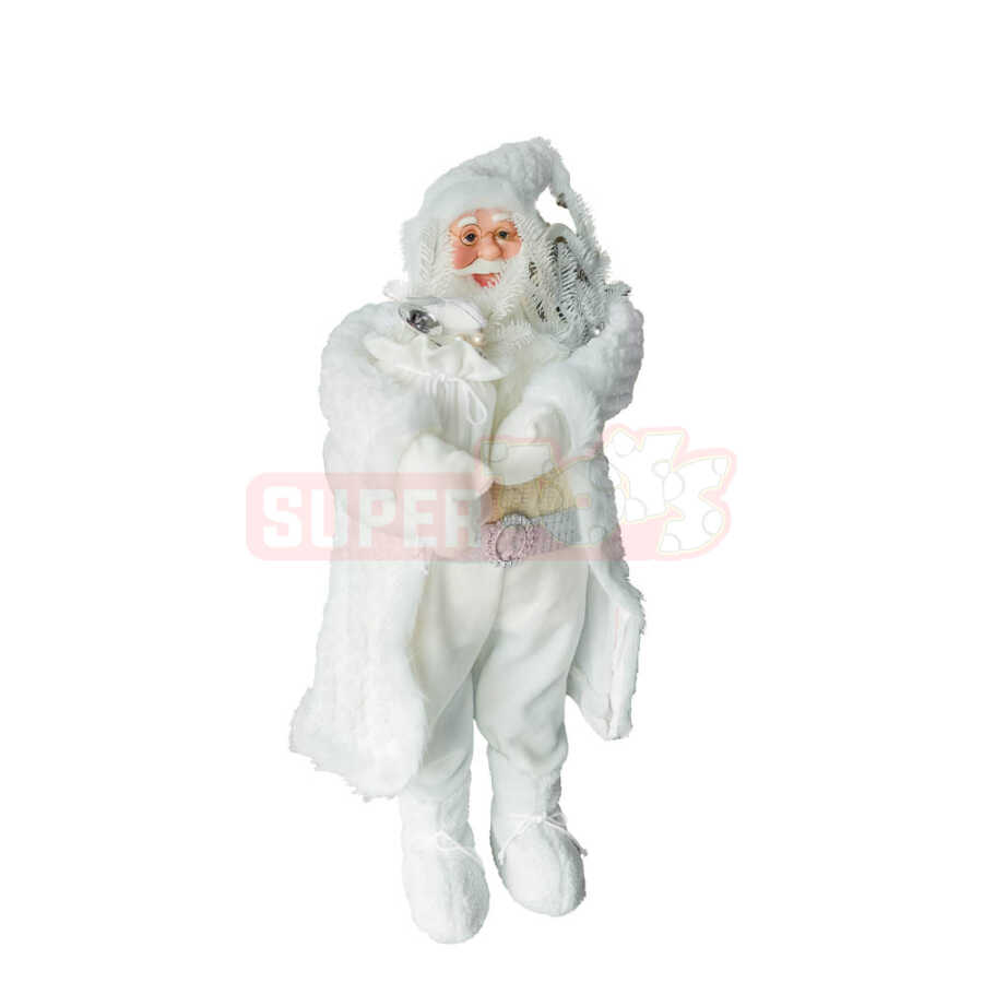 Ağ konseptdə hazırlanmış bu premium Şaxta Baba fiquru Yeni il dekorasiyasına xüsusi zəriflik qatır. Yumşaq teksturalı geyimi, real görünüşlü saqqalı və əlindəki aksesuar detalları ilə həm ev dekorunda, həm də mağaza vitrinlərində mükəmməl bayram atmosferi yaradır.