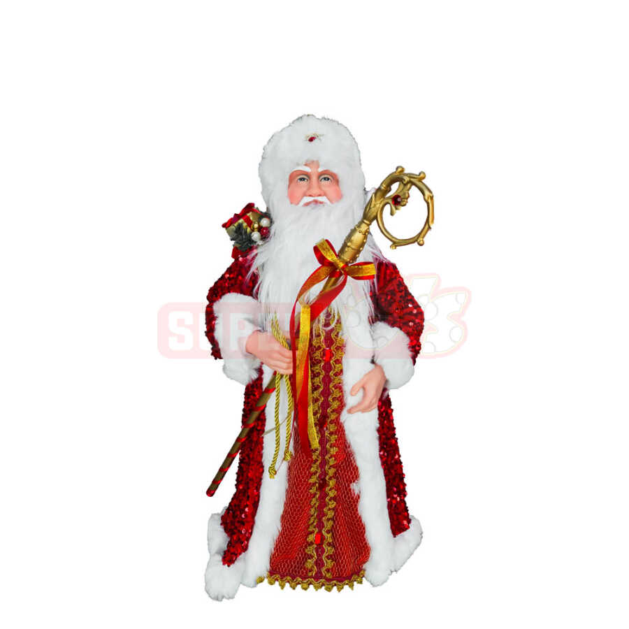 Şaxta Baba fiquru (60 sm) – qırmızı və qızılı rənglərin harmoniyası ilə bayram abu-havasını əks etdirən zərif dekorasiyadır. Əlindəki qızılı əsa və parlaq geyimi ilə bu fiqur Yeni il bəzəklərinin ayrılmaz hissəsidir.