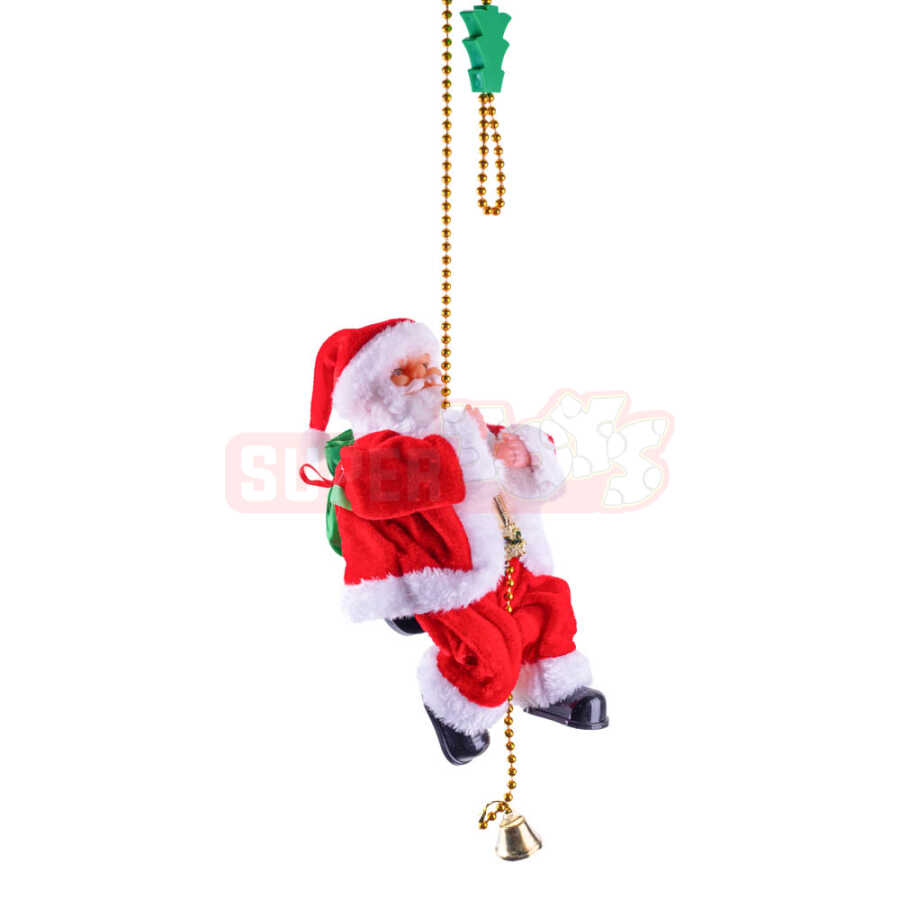 Bu asılqanlı Şaxta Baba fiquru Yeni ilin ən sevimli dekor elementlərindən biridir. Qırmızı geyimi, ağ saqqalı və belindən asılmış qızılı zəncirli asqısı ilə bu fiqur həm uşaqların, həm də böyüklərin diqqətini çəkir. Şaxta Baba ipdən asılmış vəziyyətdə, hədiyyə çantası ilə sanki bacadan evə enirmiş kimi dizayn edilib – bu da dekorasiyaya dinamik və əyləncəli görüntü qatır. İşıqlı yolka, pəncərə və ya qapı üstü bəzəkləri üçün idealdır. Bayram abu-havasını gücləndirmək və Yeni ili daha şən keçirmək istəyənlər üçün mükəmməl seçimdir.