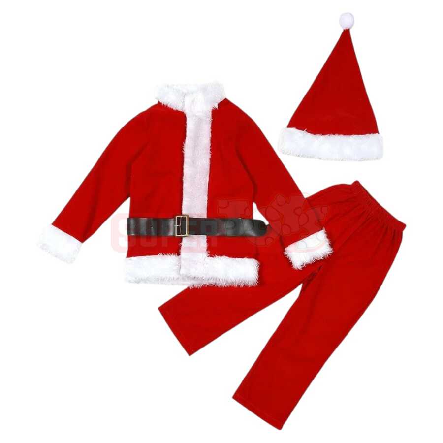 7–9 yaş arası uşaqlar üçün nəzərdə tutulan Santa geyim dəsti Yeni il tədbirləri və məktəb səhnələri üçün ideal seçimdir. Dəst qırmızı şalvar, ağ tüklü haşiyəli pencək, kəmər və klassik qırmızı papaqdan ibarətdir. Yumşaq və nəfəs alan material uşağın rahat hərəkət etməsinə imkan verir və bayram ab-havasını tam hiss etdirir.