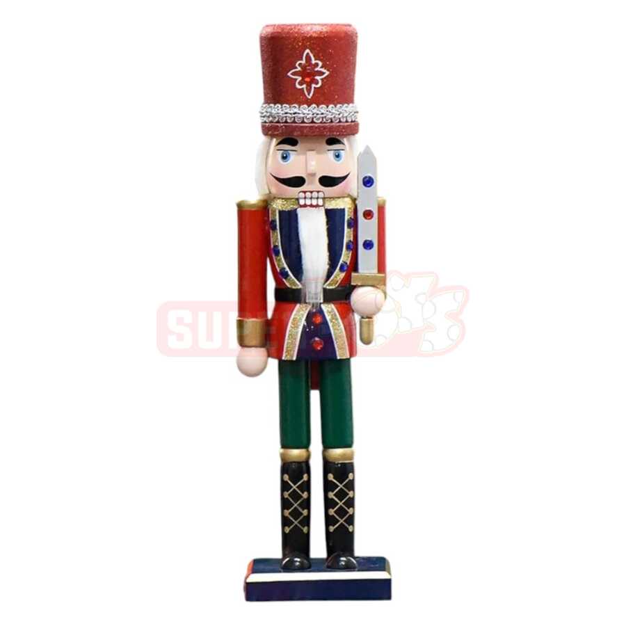 Qırmızı və yaşıl tonlarda hazırlanmış bu Şelkunçik fiquru, klassik Yeni il simvollarından biridir. Əl işi görünüşlü geyimi, qızılı və mavi detallar ilə bəzədilmiş forması ev və ofis dekorasiyasına bayram ruhu əlavə edir. Zərif parlaq örtüyü sayəsində yolka bəzəkləri ilə mükəmməl harmoniya yaradır və ideal hədiyyə variantı hesab olunur.