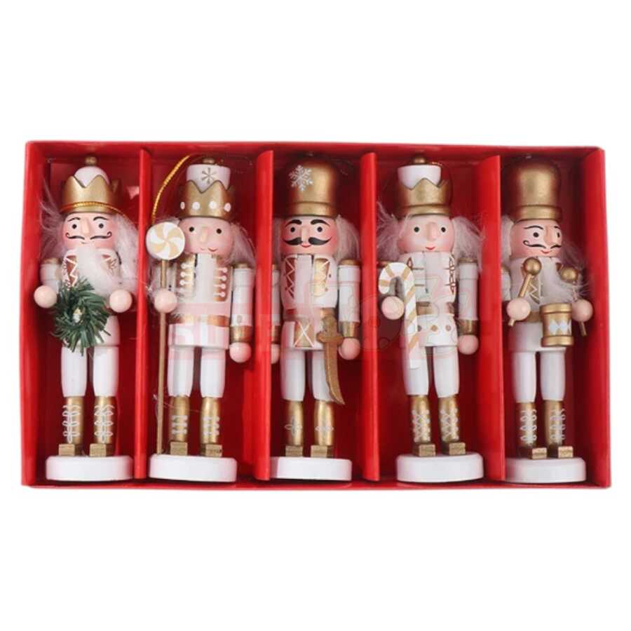 Bu 5-lü Şelkunçik fiquru dəsti Yeni İl yolkanız üçün zərif və klassik dekor seçimidir. Qızılı-ağ rəng çalarlarında dizayn edilmiş fiqurlar bayram ab-havasını daha da şıq və dəbdəbəli göstərir. Dəstdə müxtəlif formalı Şəlkunçik fiqurları yer alır – hər biri fərqli atributla (lolipop, qılınc, baraban və s.) hazırlanıb. Yolka bəzəyi və ev dekorasiyası üçün ideal seçimdir.