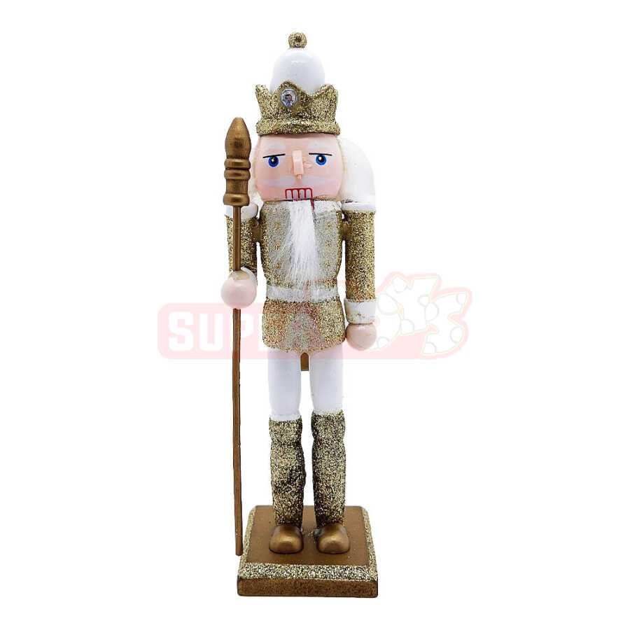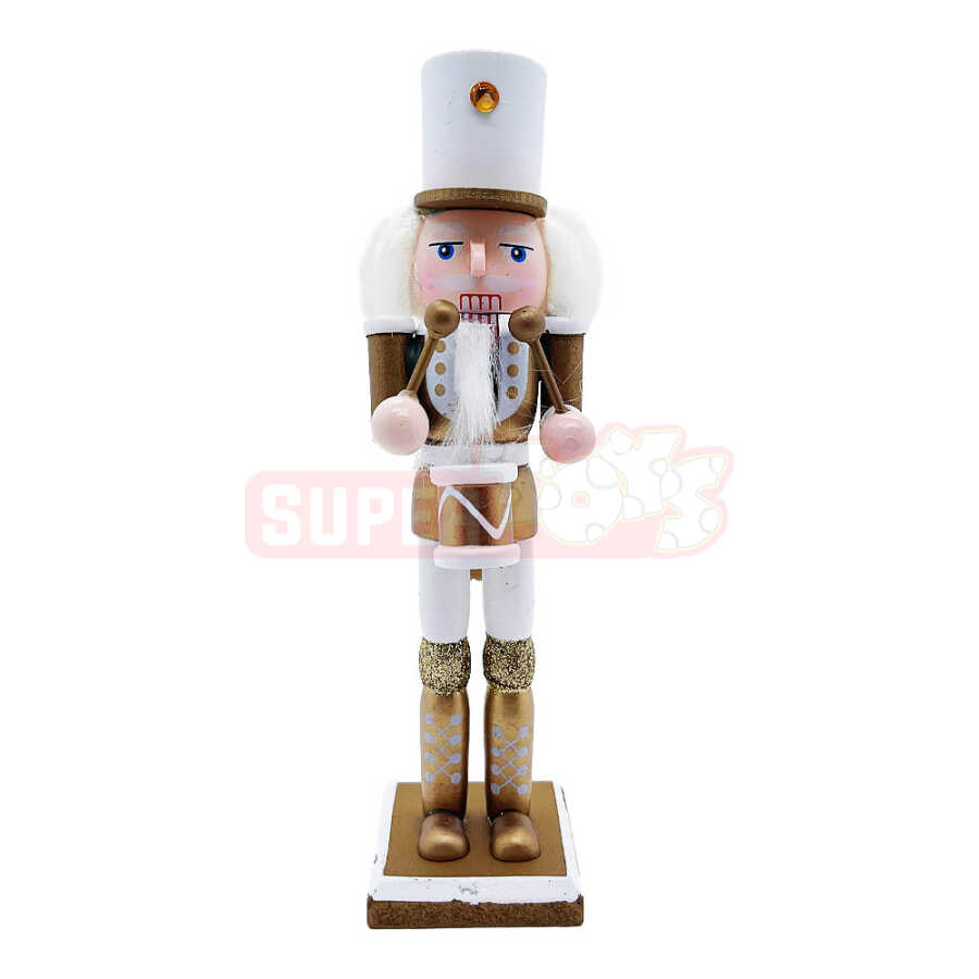 Bu 4-lü Şelkunçik fiqur dəsti Yeni il dekorasiyasına klassik və zərif atmosfer qatır. Qızılı-ağ rəng tonlarında hazırlanmış bu taxta fiqurlar masalarda, vitrinlərdə və yolka altı bəzəklərdə xüsusi şarm yaradır. Hər fiqur fərqli dizayna malikdir – biri qılınc, digəri balta və ya çəngəl formalı əşyalarla təchiz olunub. Əl işinə bənzər detallar və parıltılı bəzəklər sayəsində həm ev, həm də mağaza vitrinləri üçün ideal dekorasiyadır.