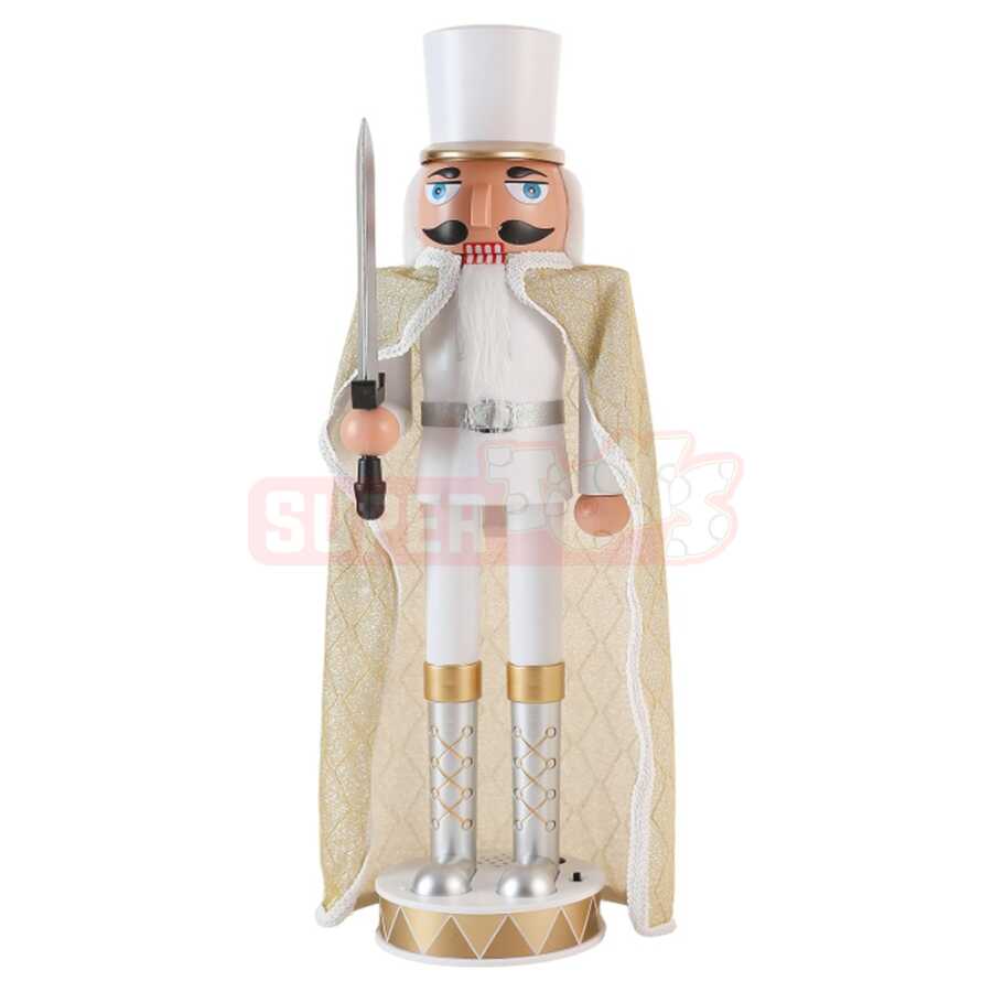 60 sm hündürlüyündə olan ağ-qızılı Şelkunçik fiquru (Nutcracker) zərif və zövqlü Yeni il dekorasiyası yaratmaq üçün ideal seçimdir. Qızılı parlaq paltar və kəmərlə bəzədilmiş bu fiqur həm klassik, həm də müasir interyerlər üçün uyğundur. Əlində qılınc tutan bu taxta əsgər fiquru güc və qoruyucu simvolu olaraq Yeni il ənənələrində xüsusi yer tutur.
